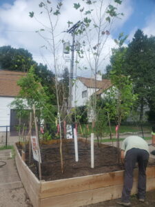 This project represents a community-wide collaboration in its truest form, with twelve different organizations participating in the project. A full list of participating organizations can be found below. The gathering was further enriched by a visit from John Evans, formerly from Hennepin County, who returned from retirement to participate in the construction of the tree garden.