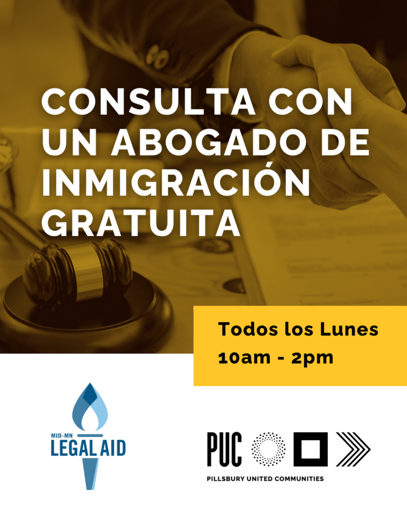 Los servicios de Mid-Minnesota Legal Aid son completamente confidenciales. No divulgamos el estatus migratorio de las personas que nos contactan para solicitar asesoría o servicios.