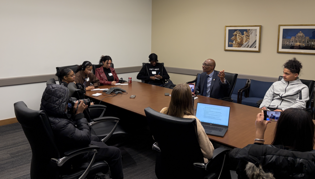 Interns had the opportunity to meet with Sen. Bobby Joe Champion and Legislative Aide Saynab Jama. North News interns asked Champion questions that pertain to their reporting for the April print edition and Brian Coyle youth heard from Saynab about her work in the White House under President Biden and her role serving on the Health Committee at the MN State Legislature.